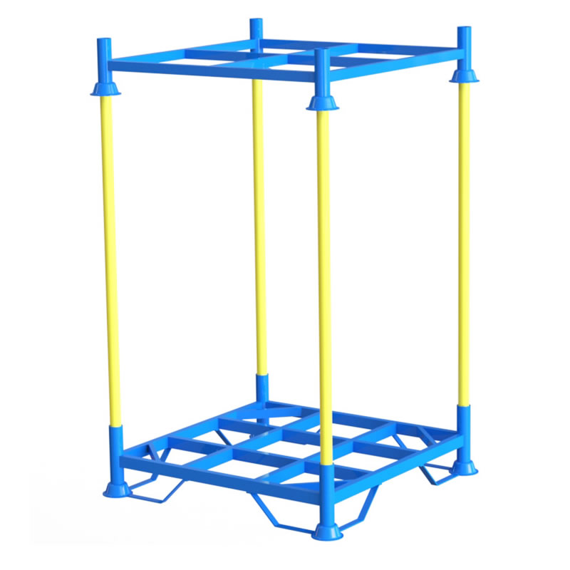 堆垛架,可相互堆3到4層,形成立體存儲模式,無需借助貨架、倉儲籠和托盤等設備,適合用在租賃倉庫、低矮的老式倉庫或車間暫存區等不適合投資貨架的區域。